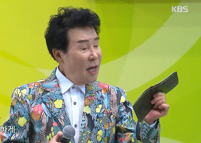 이날 송대관은 반짝이는 옷을 입고 무대에 올라 밝은 웃음을 보이며 노래를 불렀습니다. 노래가 '지갑이 형님'인만큼 지갑을 손에 들고 재미있는 몸짓을 보여 많은 박수를 받았습니다.